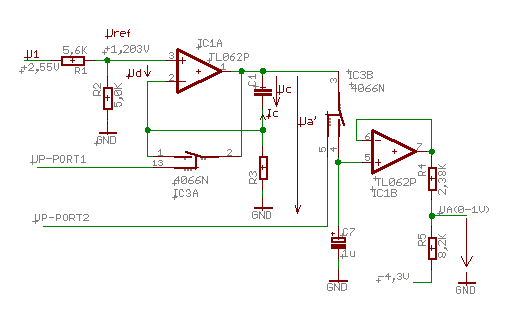 den Innenwiderstand des IC1A sowie des Analogschalters. Der Lieferstrom des Operation-